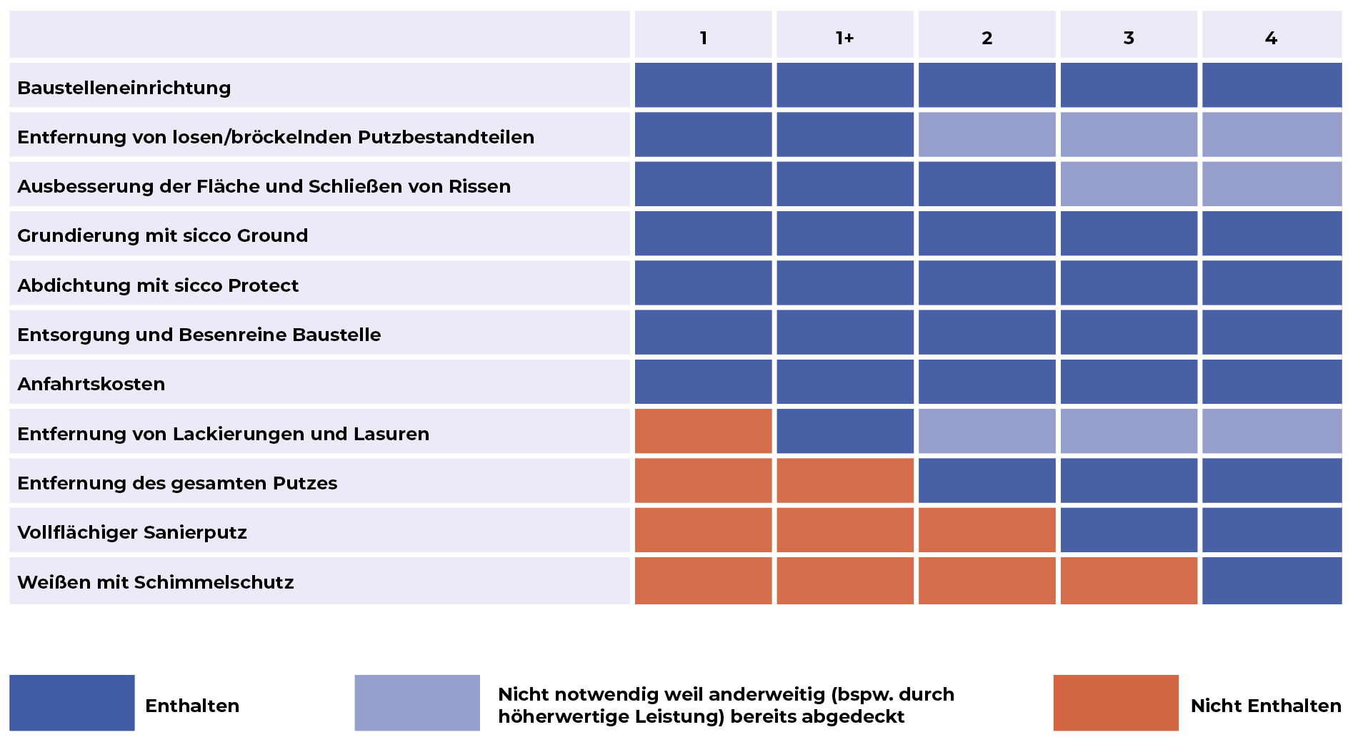 So unterschiedlich wie Gebäude gebaut sind, so unterschiedlich ist auch die Nutzung der Flächen. Wir von sicco. richten uns ganz nach Ihnen. Genügt eine Abdichtung und ist die Optik nebensächlich? Kein Problem - unser Basispaket genügt Ihnen und schont damit Ihren Geldbeutel.